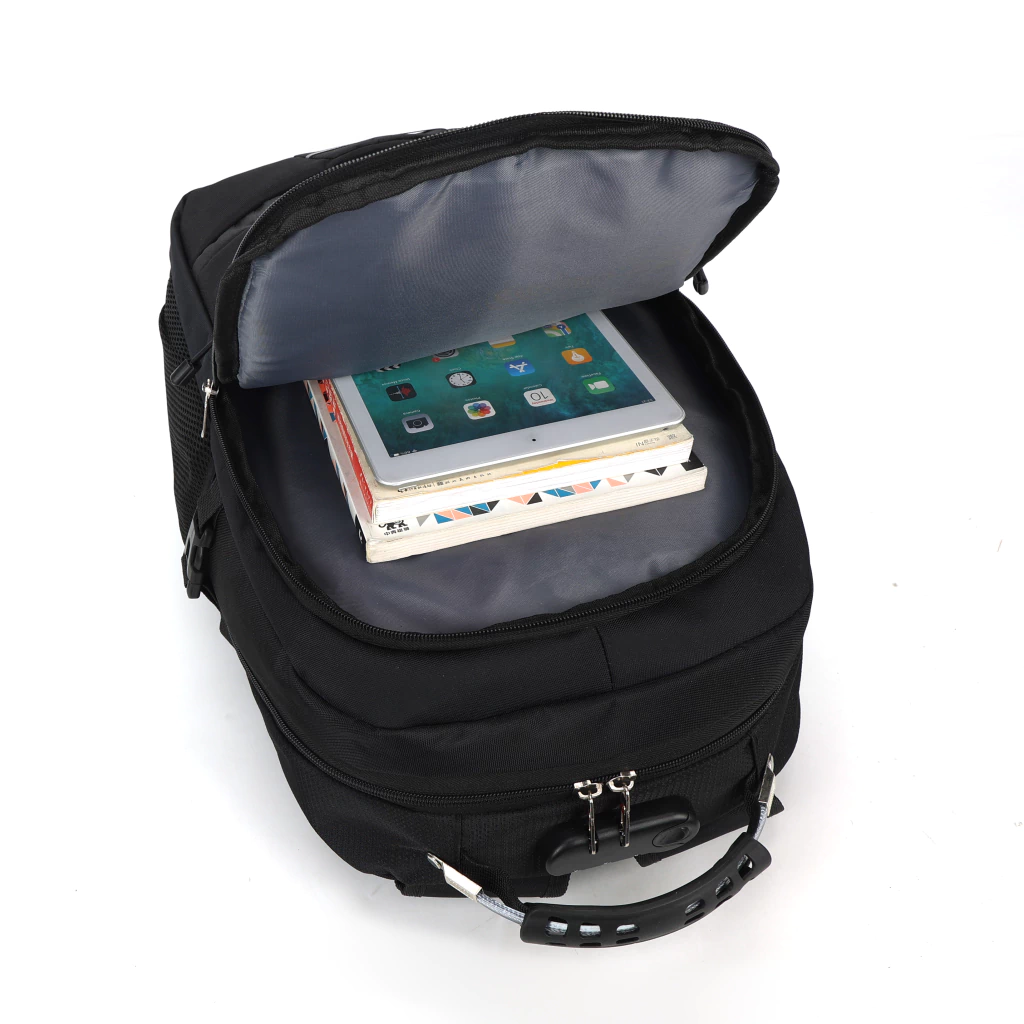 Cadeado Integrado: Tranquilidade ao seu alcance! O cadeado embutido permite que você trave os zíperes da mochila, garantindo a segurança dos seus itens pessoais em todos os momentos.